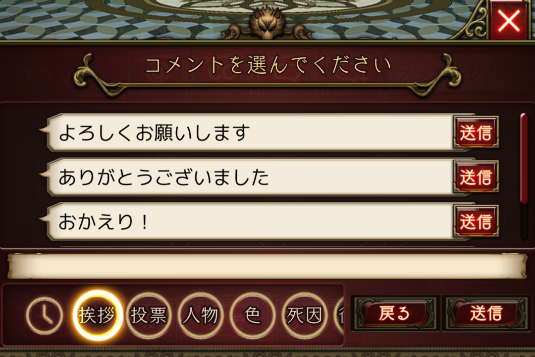 定型文ボタンを押して、簡単に定型文を選んで送信することができます